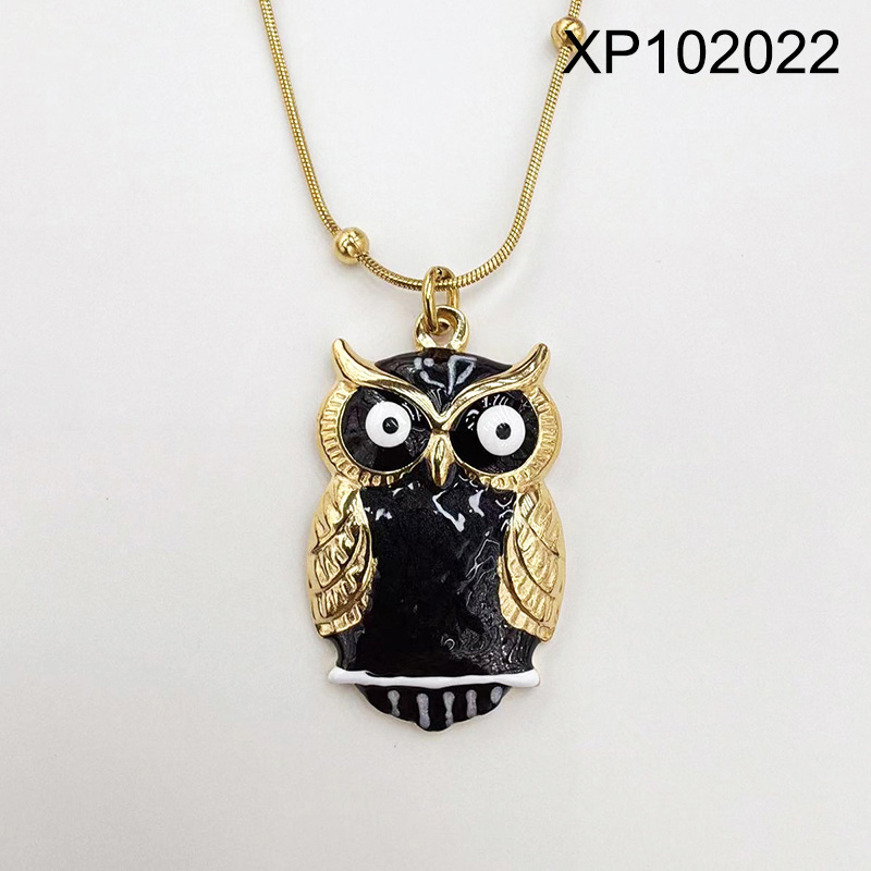 Level B Stainless Steel New Trendy Women Jewelry Drip Oil/Enamel Animal Owl Golden Pendant