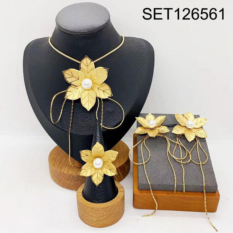 Level B Stainless Steel New Trendy Women Jewelry Pearl Style/Plastic Beads Flower Golden 3pcs SET