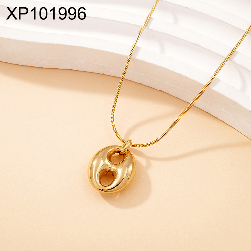 Home > Level B Stainless Steel New Trendy Women Jewelry Coffee beans Oval Pig nose Golden Pendant