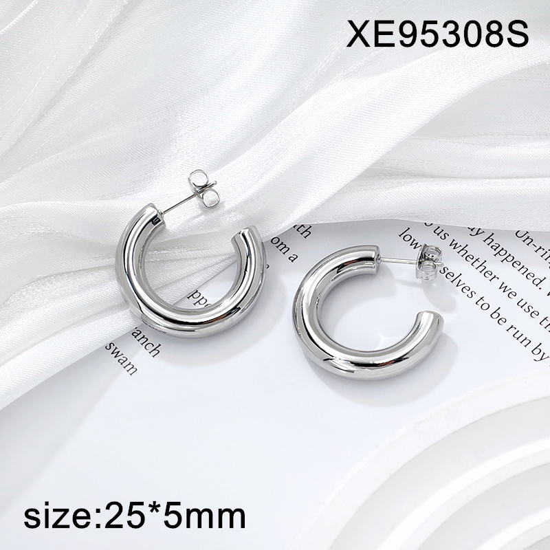 Level A Stainless Steel New Trendy Women Jewelry Steel color C-Shape Style Earrings
