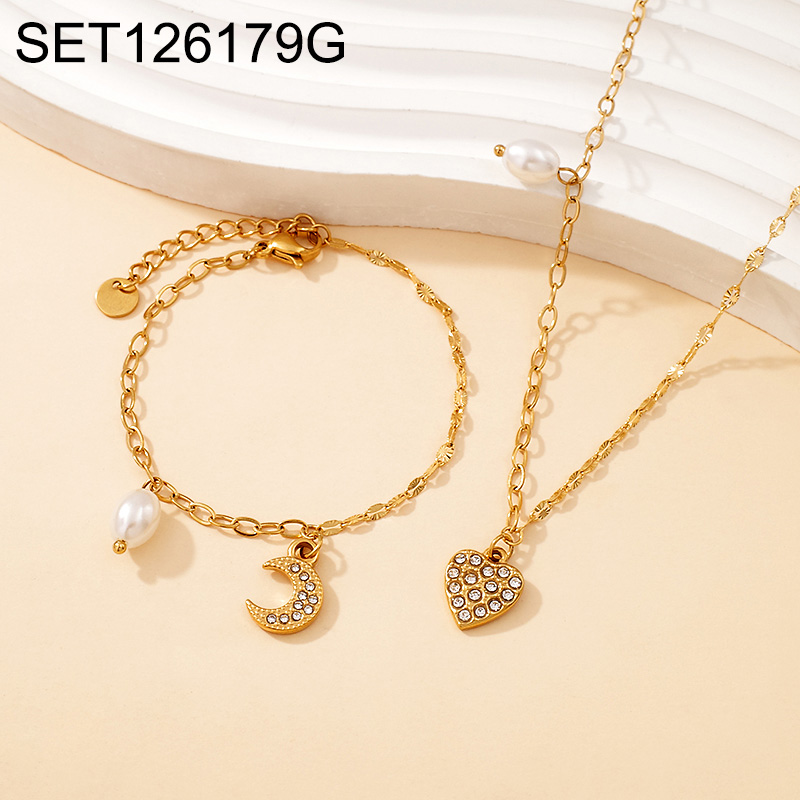 Level A Stainless Steel New Trendy Women Jewelry Pearl Style/Plastic Beads Heart Moon Golden Chain SET