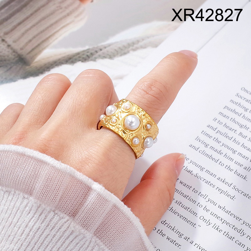 Level B Stainless Steel New Trendy Women Jewelry Pearl Style/Plastic Beads Golden Open Rings;Ring size can be adjusted freely