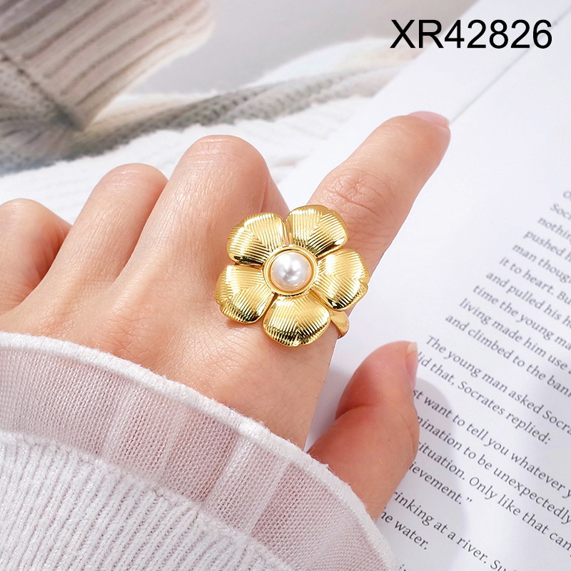 Home > Level B Stainless Steel New Trendy Women Jewelry Pearl Style/Plastic Beads Flower Golden Open Rings;Ring size can be adjusted freely