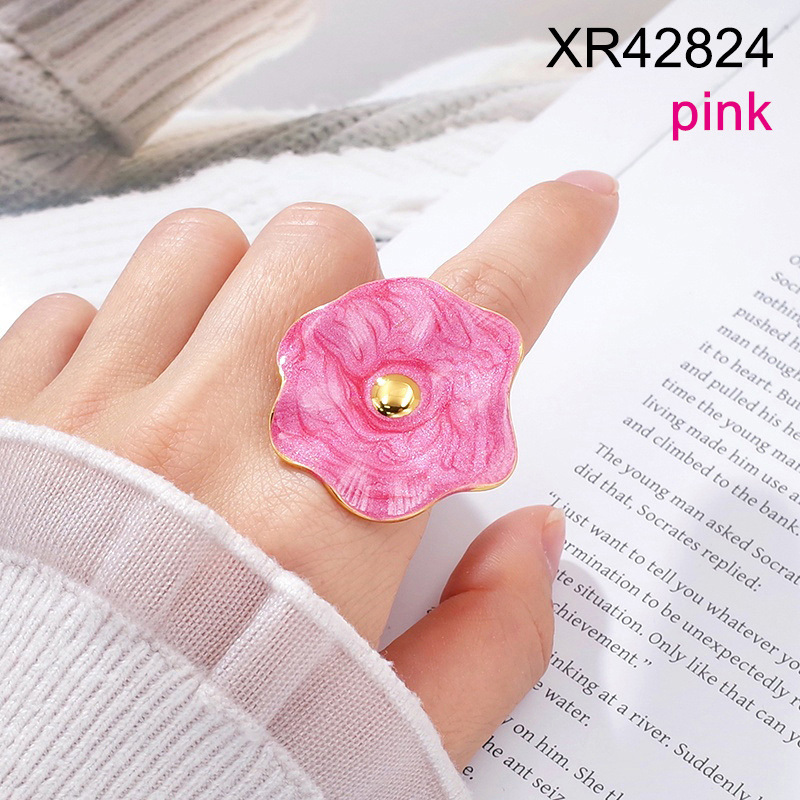 Home > Level C Stainless Steel New Trendy Women Jewelry Drip Oil/Enamel Pink Flower Golden Open Rings;Ring size can be adjusted freely
