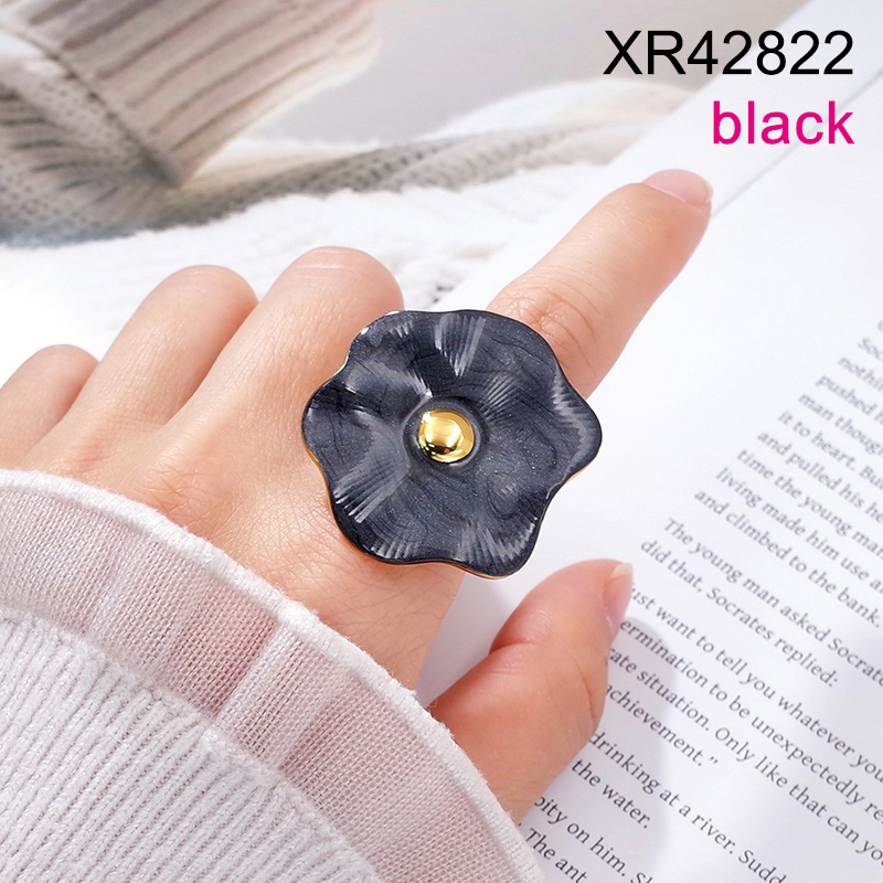 Home > Level C Stainless Steel New Trendy Women Jewelry Drip Oil/Enamel Black Flower Golden Open Rings;Ring size can be adjusted freely