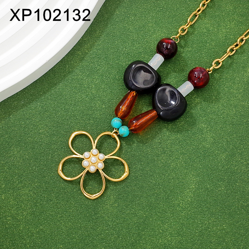 Level B Stainless Steel New Trendy Women Jewelry Pearl Style/Plastic Beads Flower Golden Pendant