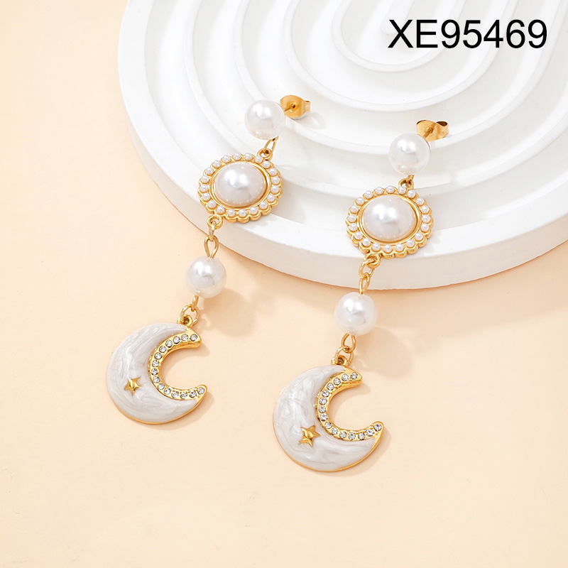 Level B Stainless Steel New Trendy Women Jewelry Pearl Style/Plastic Beads Moon Golden Earrings
