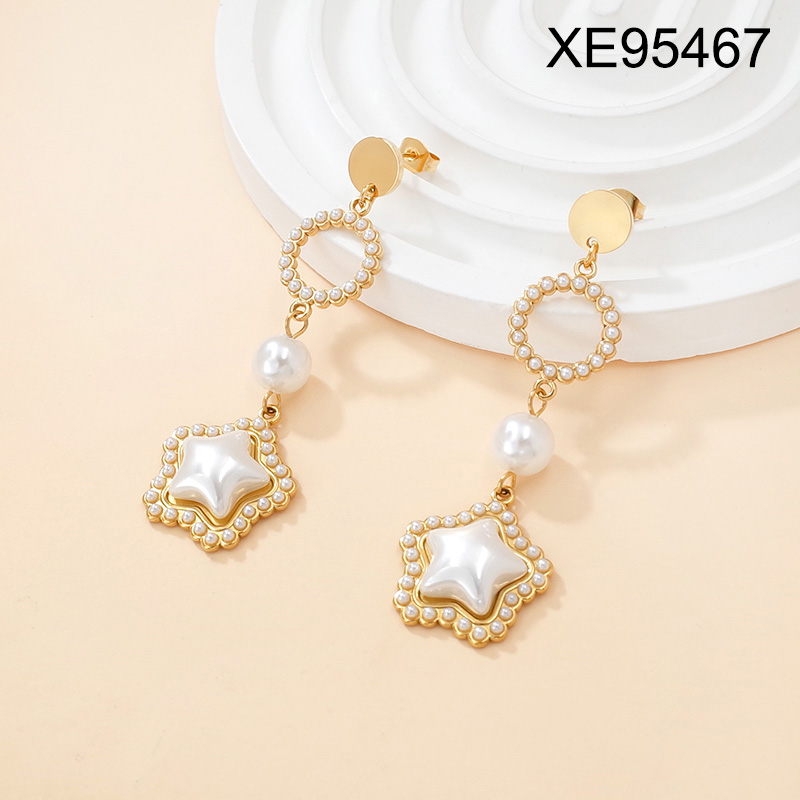 Level B Stainless Steel New Trendy Women Jewelry Pearl Style/Plastic Beads Star Golden Earrings