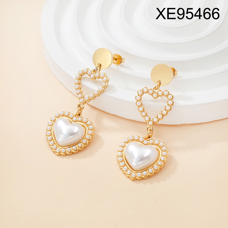 Level B Stainless Steel New Trendy Women Jewelry Pearl Style/Plastic Beads Heart Golden Valentine's Day Earrings