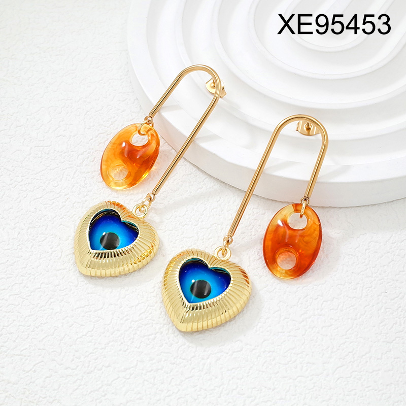 Home > Level B Stainless Steel New Trendy Women Jewelry Heart Eye Oval Pig nose Golden Valentine's Day Earrings