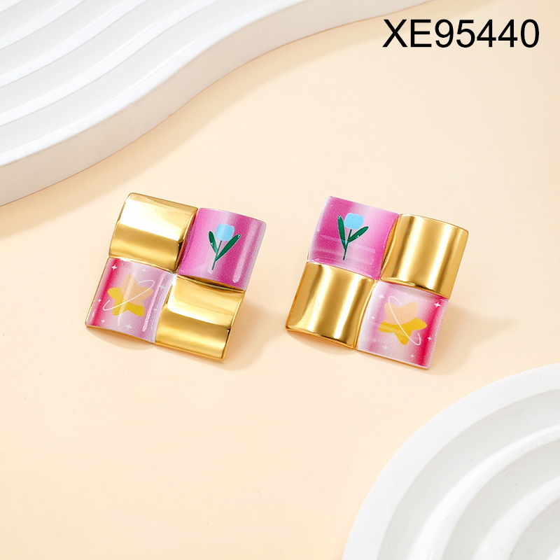 Home > Level B Stainless Steel New Trendy Women Jewelry Square Golden Earrings