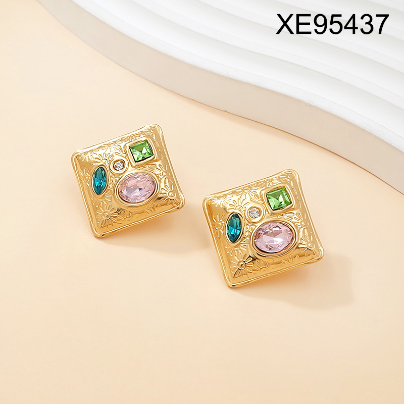 Level B Stainless Steel New Trendy Women Jewelry Rhombus Flower Golden Earrings