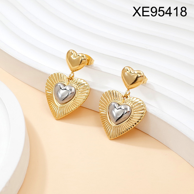 Level B Stainless Steel New Trendy Women Jewelry Heart Two Tone Valentine's Day Earrings