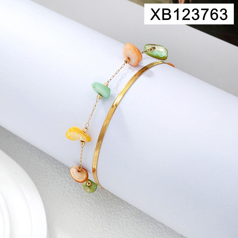 Level B Stainless Steel New Trendy Women Jewelry Two Layers Chain Golden Bracelet