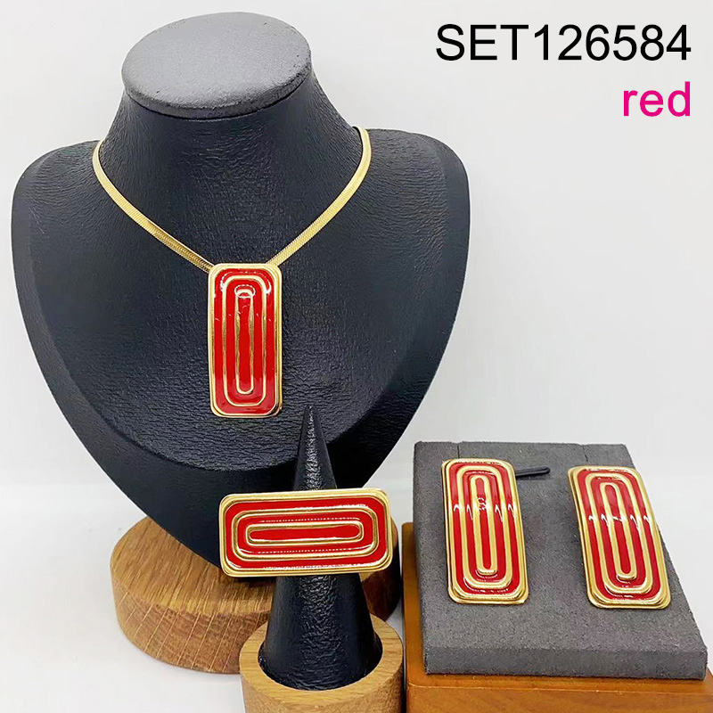 Level B Stainless Steel New Trendy Women Jewelry Drip Oil/Enamel Red Rectangle Golden 3pcs SET