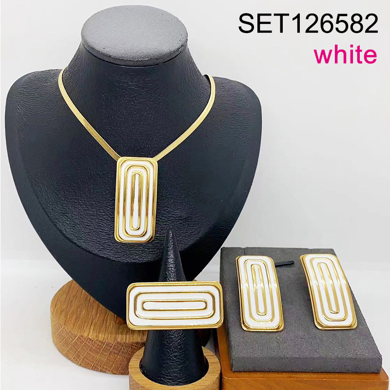 Level B Stainless Steel New Trendy Women Jewelry Drip Oil/Enamel White Rectangle Golden 3pcs SET