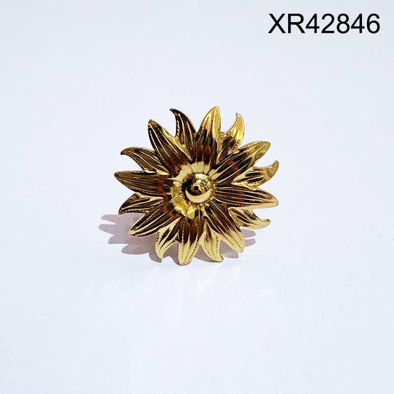 Level C Stainless Steel New Trendy Women Jewelry Flower Golden Open Rings;Ring size can be adjusted freely