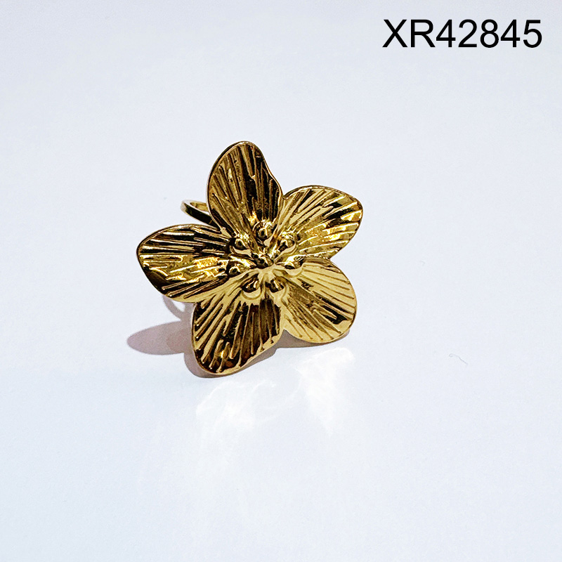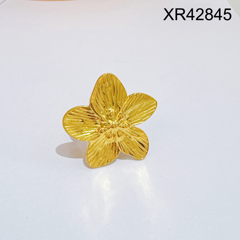 Level C Stainless Steel New Trendy Women Jewelry Flower Golden Open Rings;Ring size can be adjusted freely