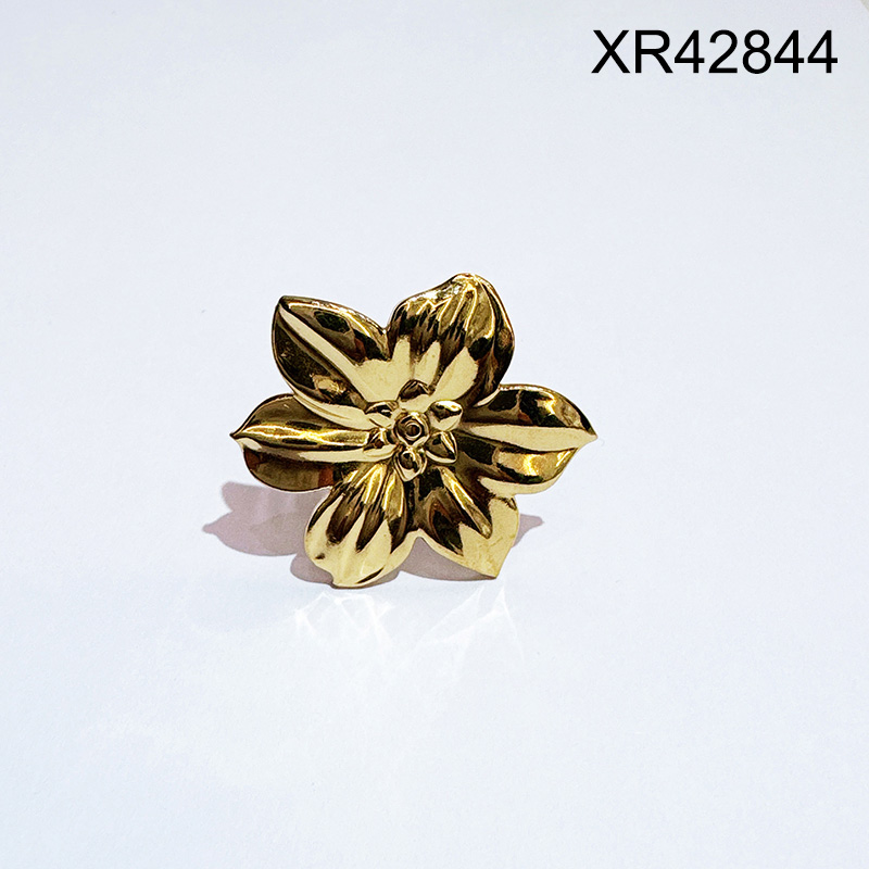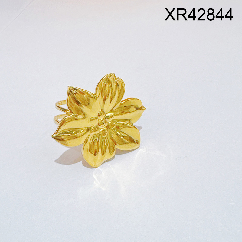 Level C Stainless Steel New Trendy Women Jewelry Flower Golden Open Rings;Ring size can be adjusted freely