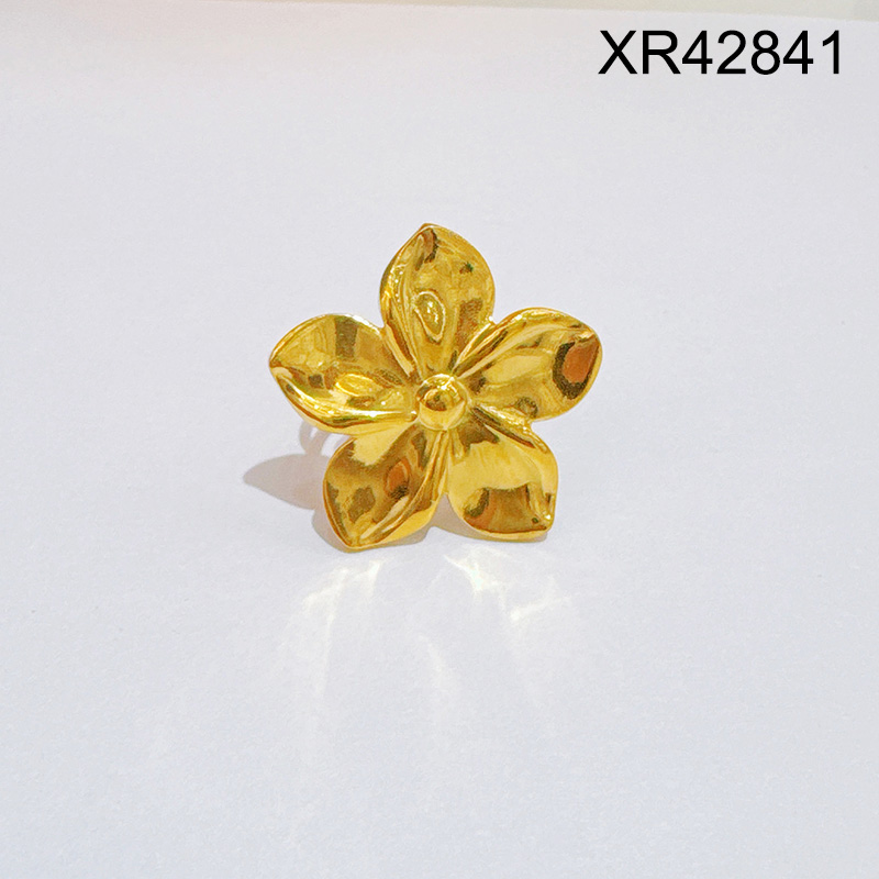 Level C Stainless Steel New Trendy Women Jewelry Flower Golden Open Rings;Ring size can be adjusted freely