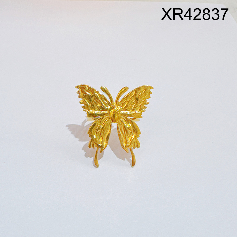 Level C Stainless Steel New Trendy Women Jewelry Animal Butterfly Golden Open Rings;Ring size can be adjusted freely