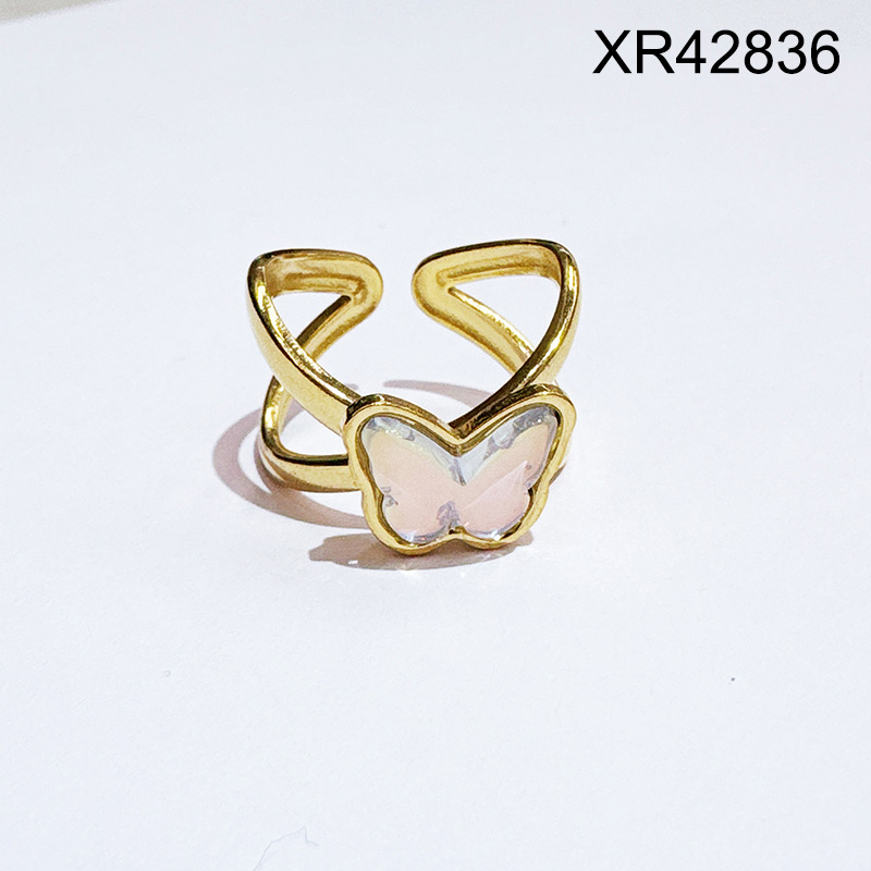 Level C Stainless Steel New Trendy Women Jewelry Animal Butterfly Golden Open Rings;Ring size can be adjusted freely