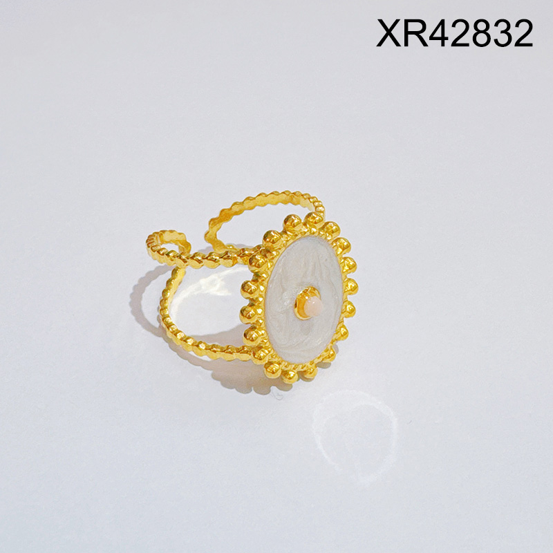 Level C Stainless Steel New Trendy Women Jewelry Oval Golden Open Rings;Ring size can be adjusted freely