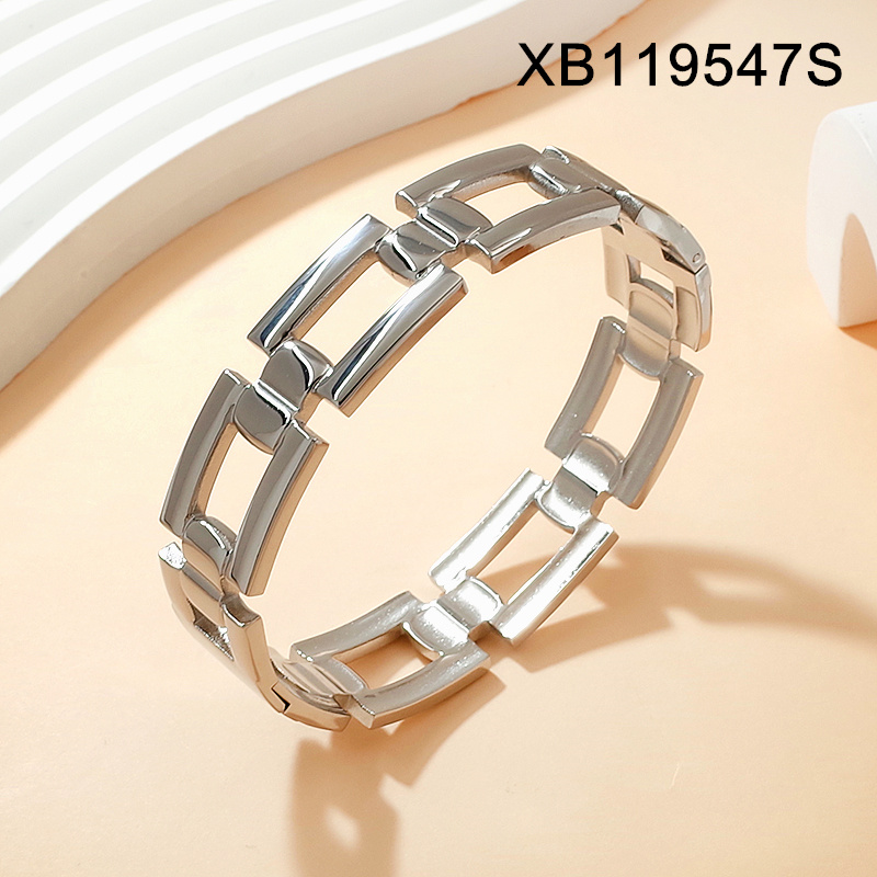 Level A Stainless Steel New Trendy Women Jewelry Rectangle Steel color Bangle