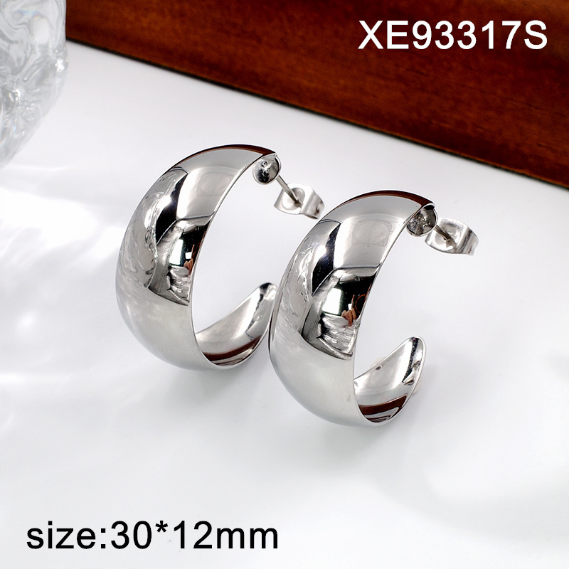 Level A Stainless Steel New Trendy Women Jewelry Steel color C-Shape Style Earrings