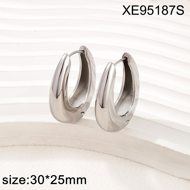 Home > Level A Stainless Steel New Trendy Women Jewelry Oval Steel color Hoop Earrings