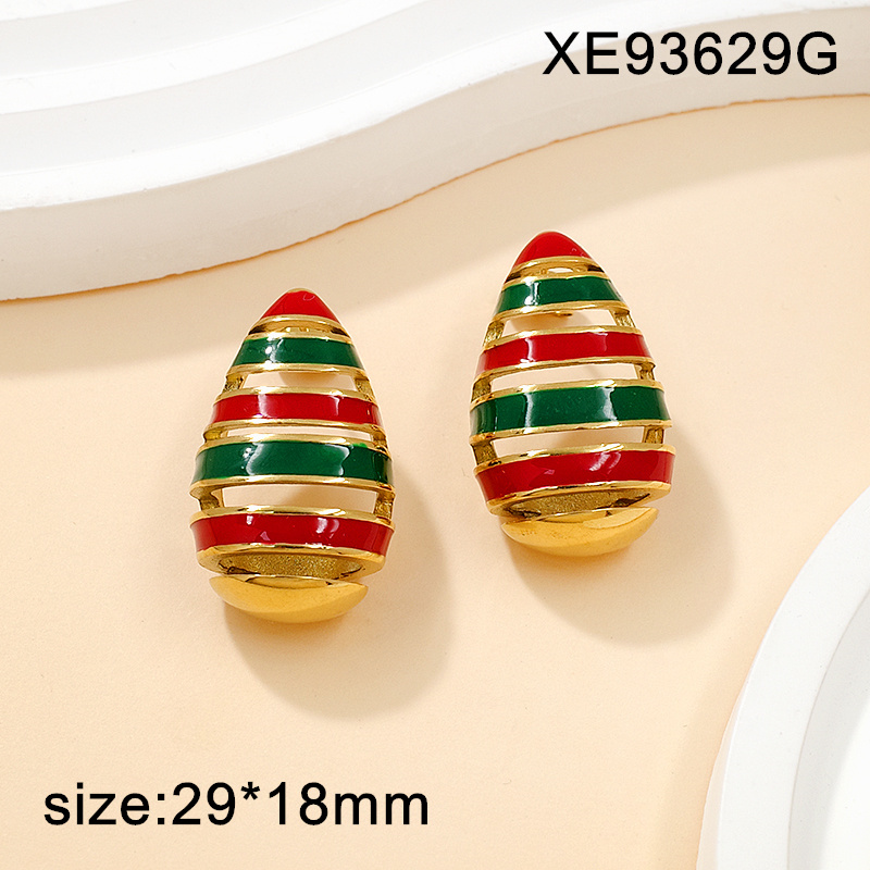 Level A Stainless Steel New Trendy Women Jewelry Drip Oil/Enamel Red&Green Water Drip Golden Earrings