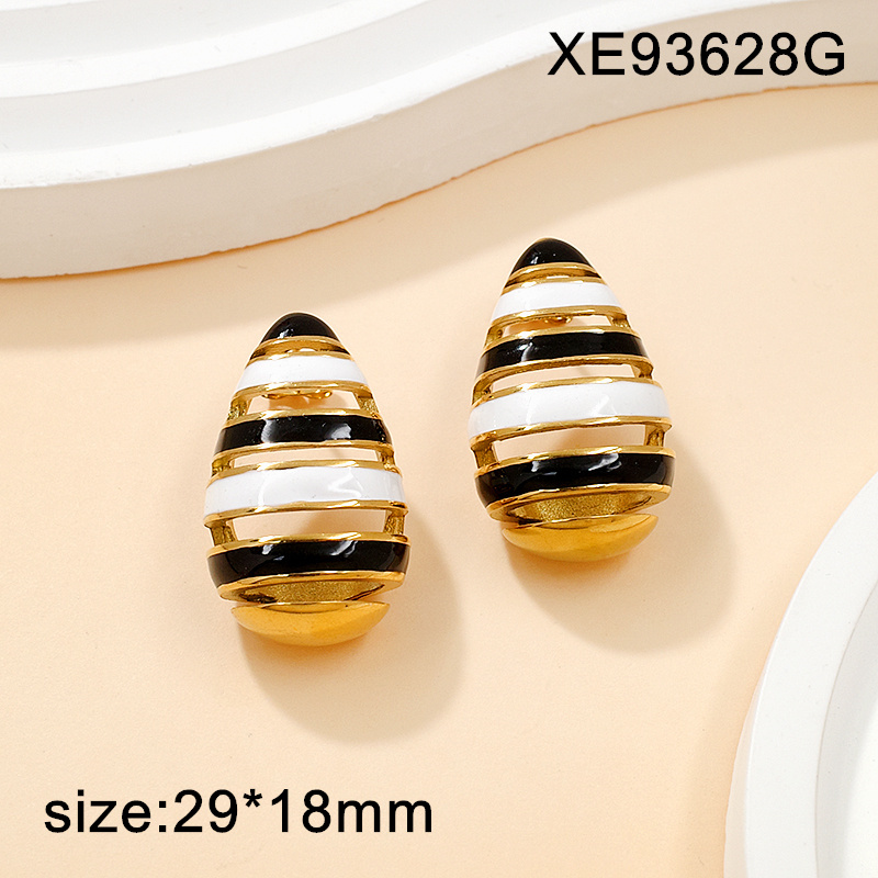 Level A Stainless Steel New Trendy Women Jewelry Drip Oil/Enamel Black&White Water Drip Golden Earrings