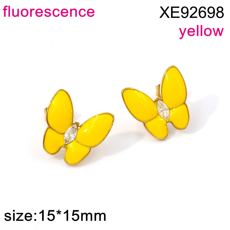 Home > Level A Stainless Steel New Trendy Women Jewelry Animal Butterfly Fluorescence Yellow Enamel Earrings