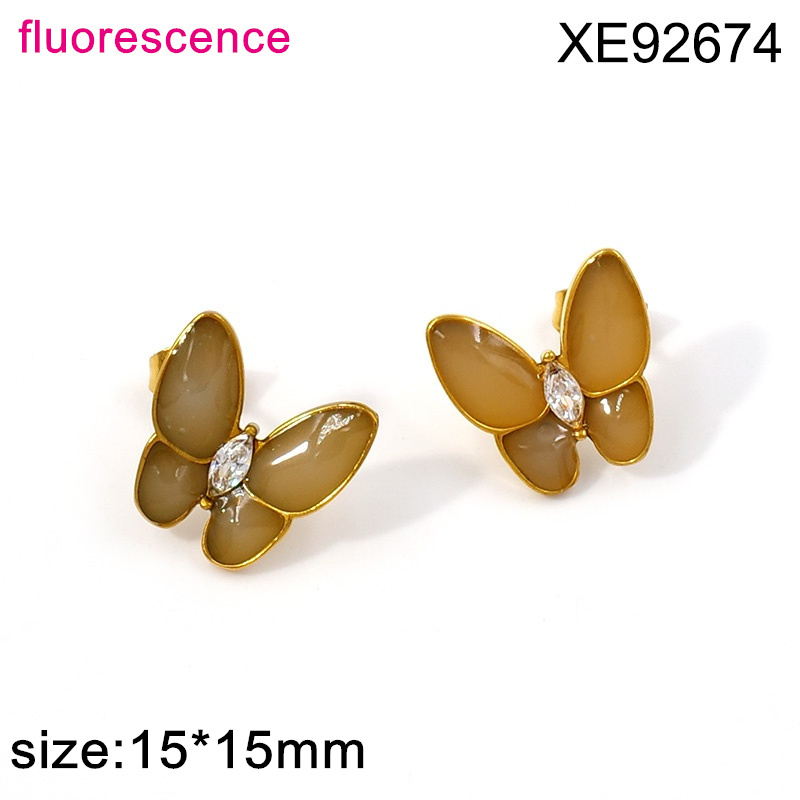 Home > Level A Stainless Steel New Trendy Women Jewelry Animal Butterfly Fluorescent Enamel Earrings