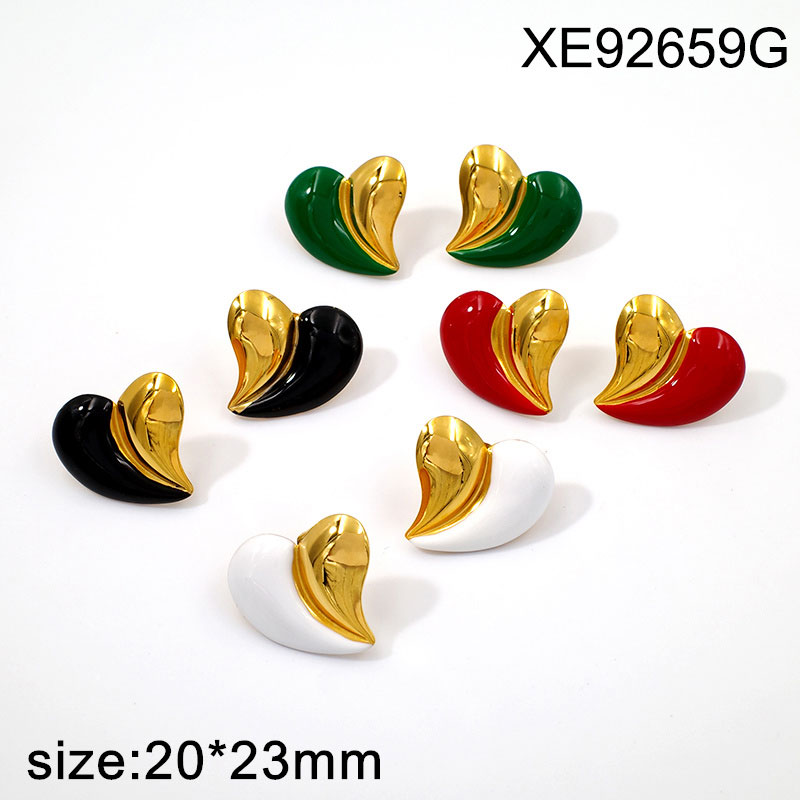 Home > Level A Stainless Steel New Trendy Women Jewelry Drip Oil/Enamel Heart Golden Valentine's Day Earrings