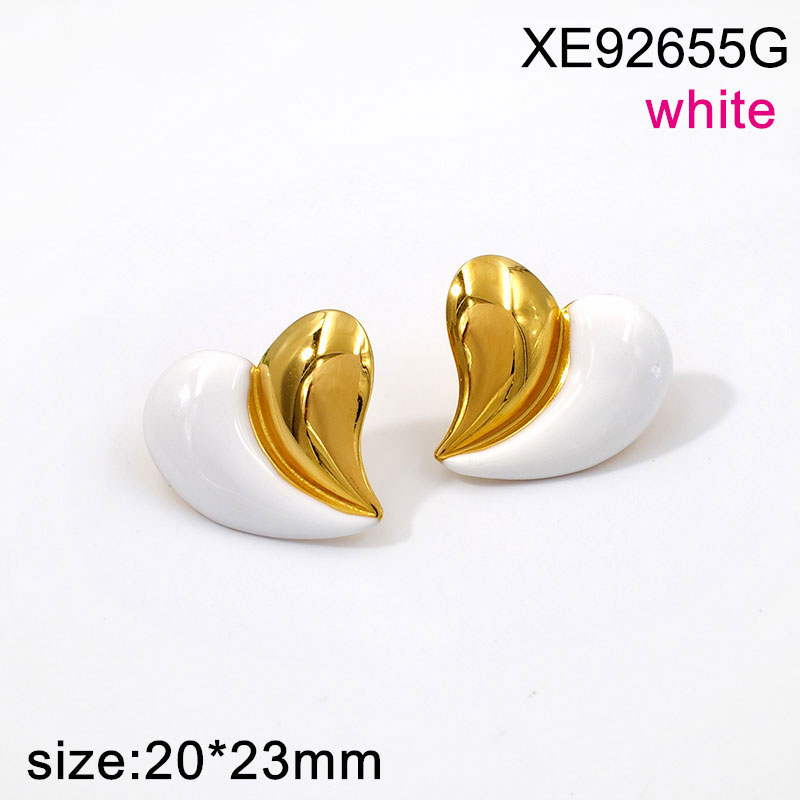 Home > Level A Stainless Steel New Trendy Women Jewelry Drip Oil/Enamel White Heart Golden Valentine's Day Earrings