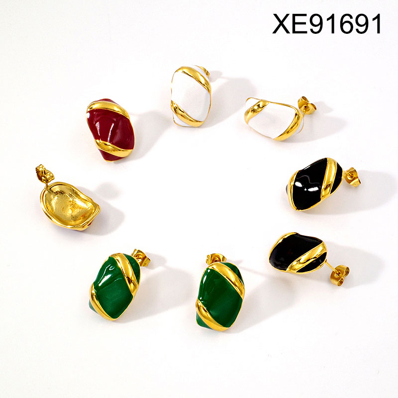 Home > Level A Stainless Steel Jewelry New Trendy Drip Oil/Enamel Golden Earring