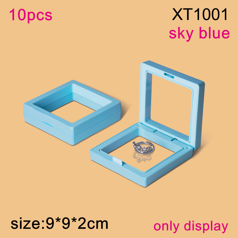 Fashion Jewelry Transparent PE Film Display Box Small Commodity Suspension Sky blue Square Packaging Box;Only display