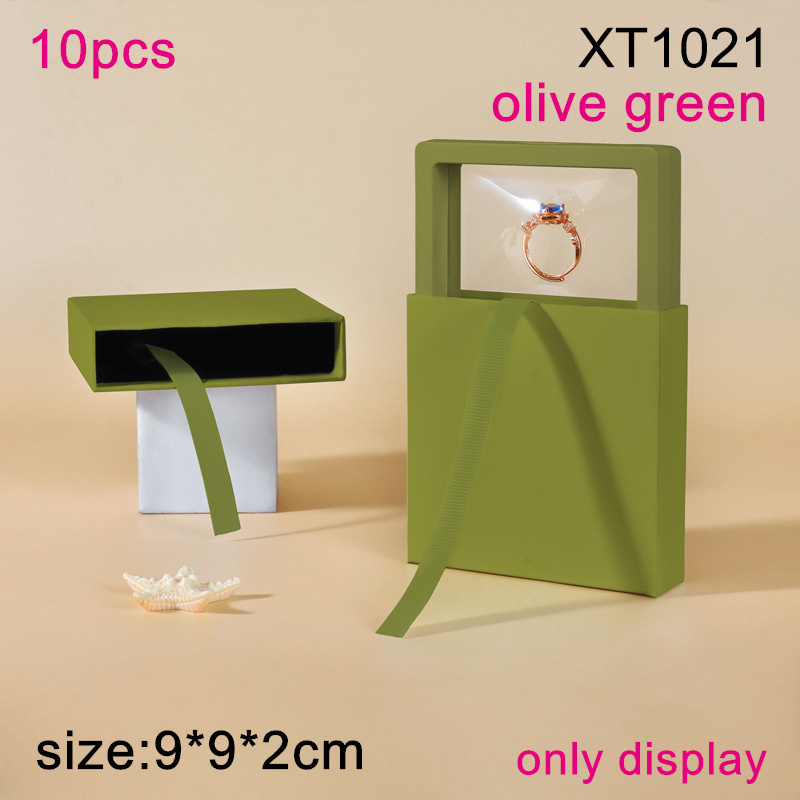 Fashion Jewelry Transparent PE Film Display Box Small Commodity Suspension Olive green Square Packaging Box;Only display