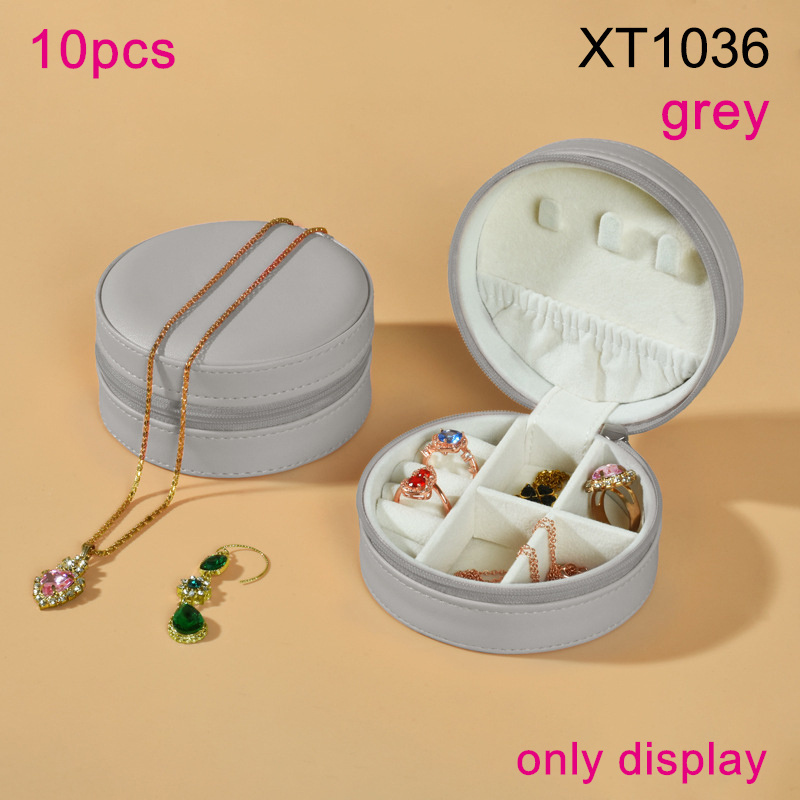 Home > Fashion Jewelry Portable Multi Functional Storage Grey Round PU leather Jewelry box;Only display