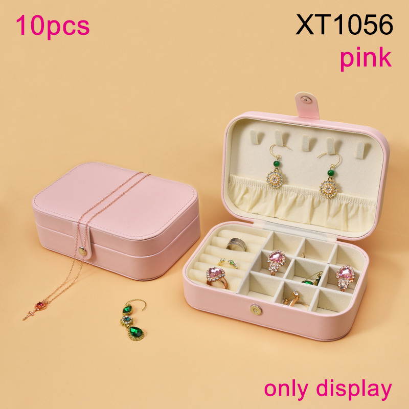 Fashion Jewelry Portable Multi Functional Storage Pink Rectangle PU leather Jewelry box;Only display