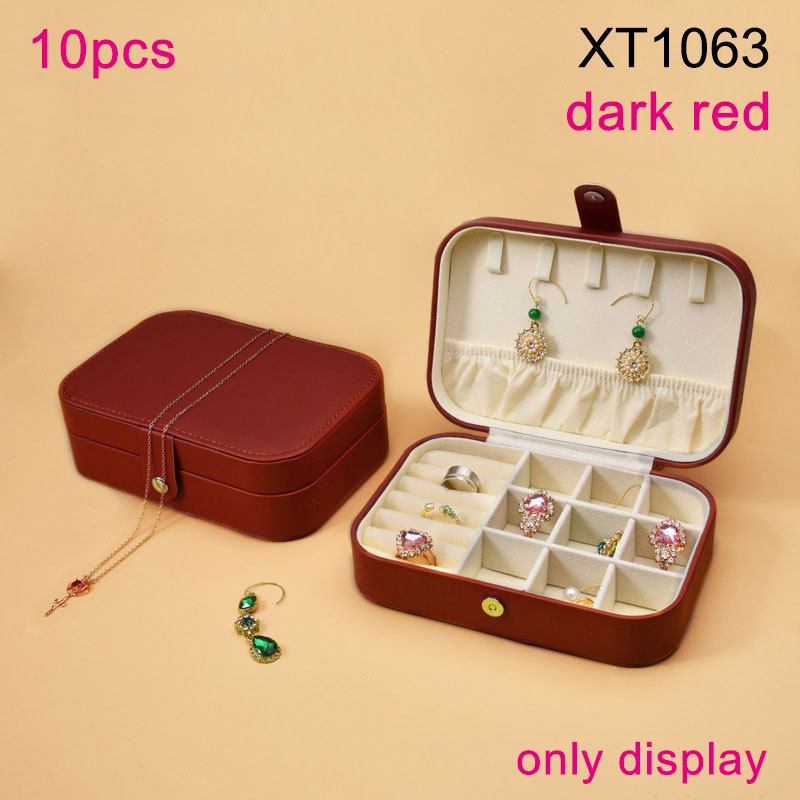 Home > Fashion Jewelry Portable Multi Functional Storage Dark red Rectangle PU leather Jewelry box;Only display