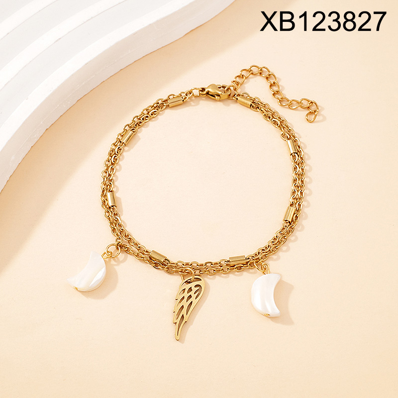 Level B Stainless Steel New Trendy Women Jewelry Two Layers Chain Animal Wing Moon Golden Bracelet