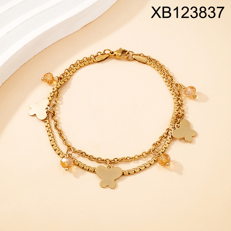 Home > Level B Stainless Steel New Trendy Women Jewelry Two Layers Chain Animal Butterfly Golden Bracelet