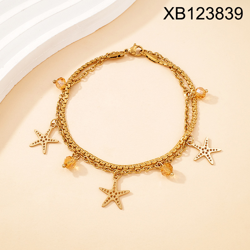 Level B Stainless Steel New Trendy Women Jewelry Two Layers Chain Summer beach Animal Starfish Golden Bracelet