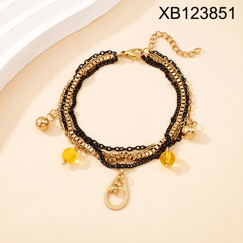 Home > Level B Stainless Steel New Trendy Women Jewelry Four Layers Chain Water Drip Two Tone Bracelet