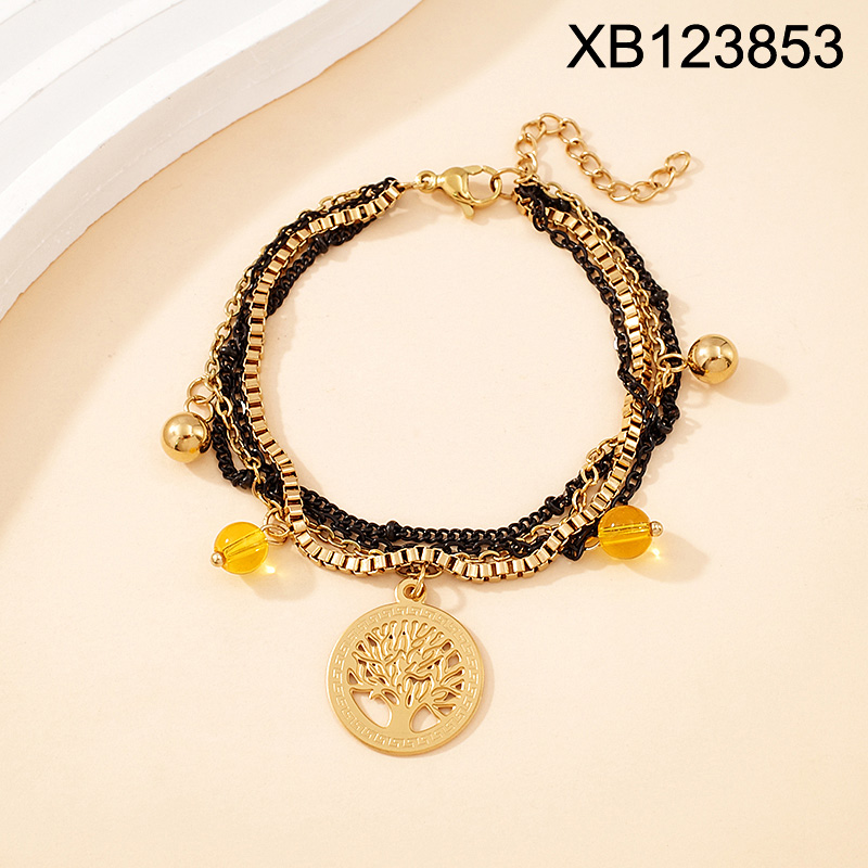 Level B Stainless Steel New Trendy Women Jewelry Four Layers Chain Tree Two Tone Bracelet
