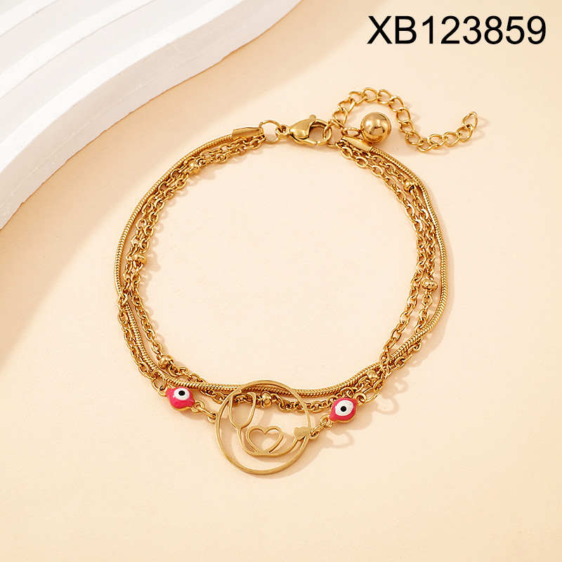 Home > Level B Stainless Steel New Trendy Women Jewelry Three Layers Chain Round Heart Stethoscope Golden Bracelet