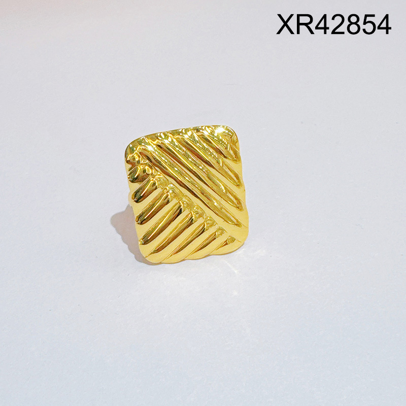Level C Stainless Steel New Trendy Women Jewelry Rectangle Golden Open Rings;Ring size can be adjusted freely