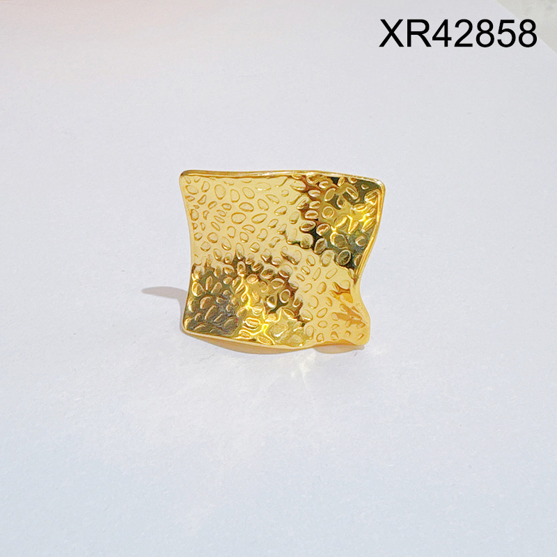 Level C Stainless Steel New Trendy Women Jewelry Square Golden Open Rings;Ring size can be adjusted freely